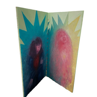 Wood, acrylic paint, molding paste, photos,