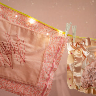 Scrap fabric, acrylic paint, ribbon, embroidery floss,