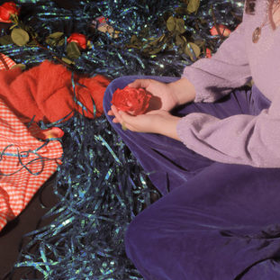 string, felt, fabric, glitter, flowers, polymer clay